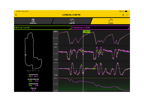 Una tecnologia unica che utilizza accelerometri, giroscopi, elaborazione immagini e un ricevitore multi-GNSS a 25 Hz per generare le migliori traiettorie in pista.
