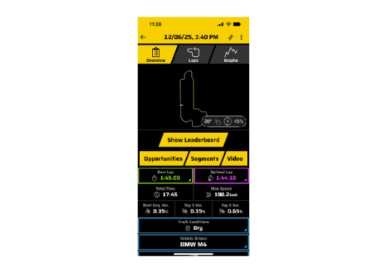Sovrapponi i tuoi dati ai video in alta definizione, inclusi forma del circuito, le velocità, i delta, l’accelerazione laterale e altro ancora. Puoi anche condividere i video direttamente sui tuoi profili social1 (richiede connessione internet; si consiglia la connettività Wi-Fi®).
