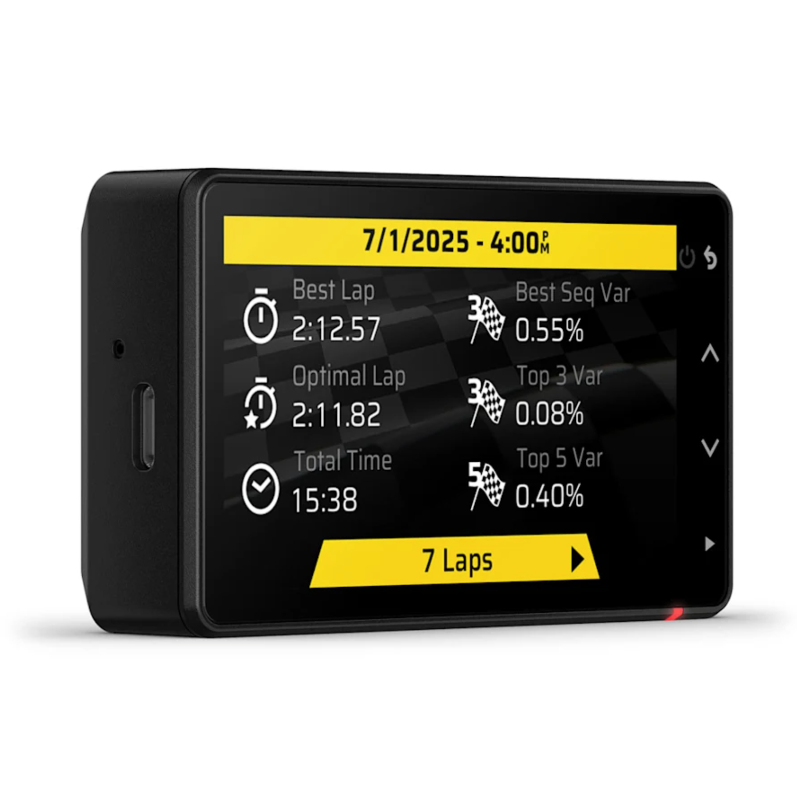 Registra il tempo di accelerazione da 0 a 100 km/h (0-60 mph), i tempi sulle distanze di 200 metri (1/8 di miglio) e 400 metri (1/4 di miglio) con un abbonamento Garmin Performance Package™ attivo.